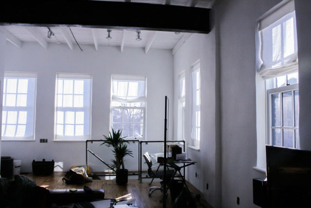 Nous sommes rue St-Jaques à Montréal dans un ancien machine shop. Le propriétaire a fait isoler tous les murs qui donnent sur l'extérieur. J'ai appliqué deux couches de plâtre pour donner un relief légèrement inégal et bosselé afin qu'on sente la main de l'homme.
